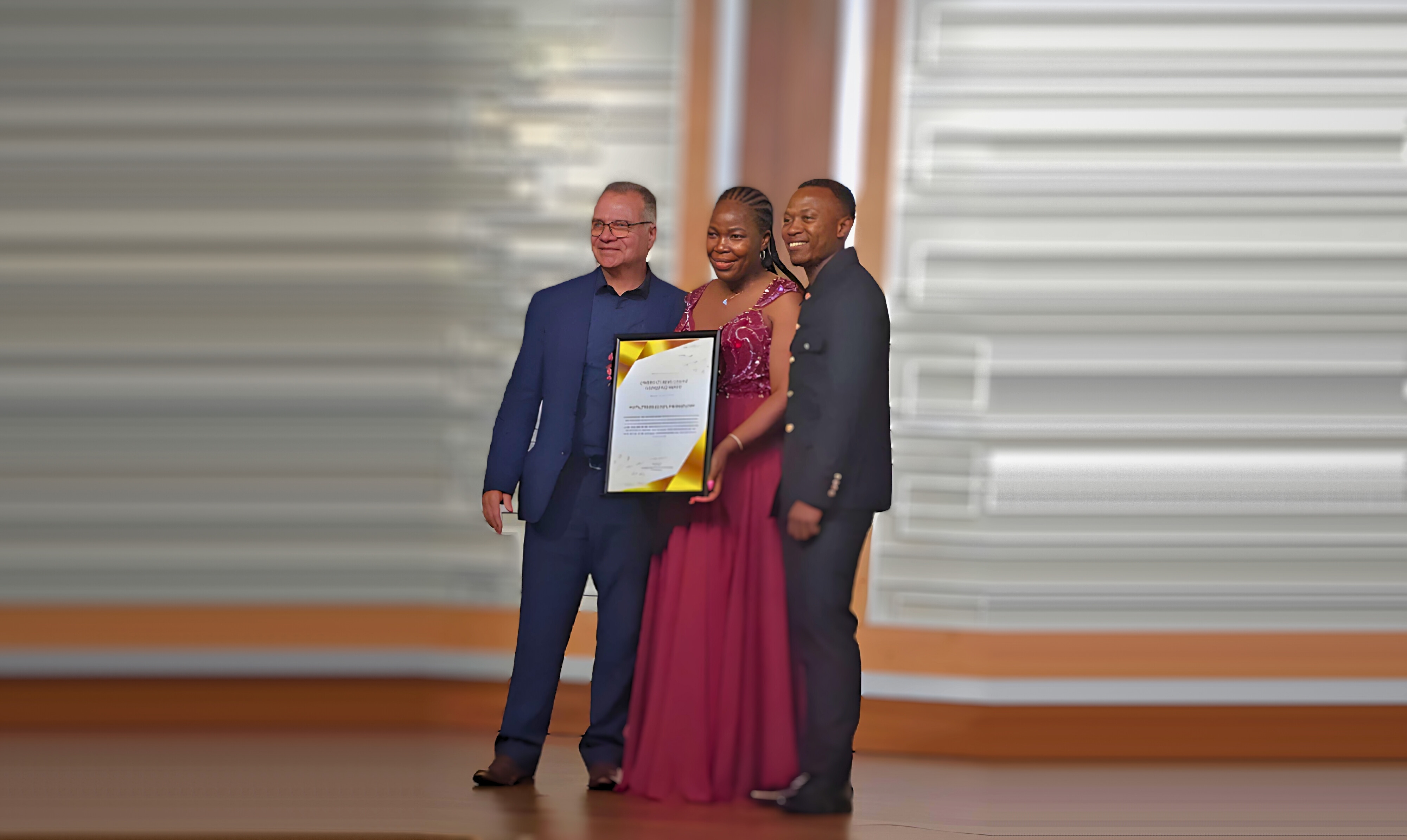 Presenting the prestigious Youth Employment Award presented to exemplify the heritage of skills development for the merSETA funded and SACGRA managed internship program at Kinfasa Engineering. Presented on September 12, 2025 by Mr Thamsanqa Maqubela (Founder & CEO) to Ms Claudia Salamanca (Director Admin, Kinfasa) and Ms Patricia Simamane (Health & Safety Officer, Kinfasa) for incredible skills transfer and stipend top up to Mr Luthando Mthwa (Mechanical Engineering graduates from Mangosuthu University of Technology in Durban.