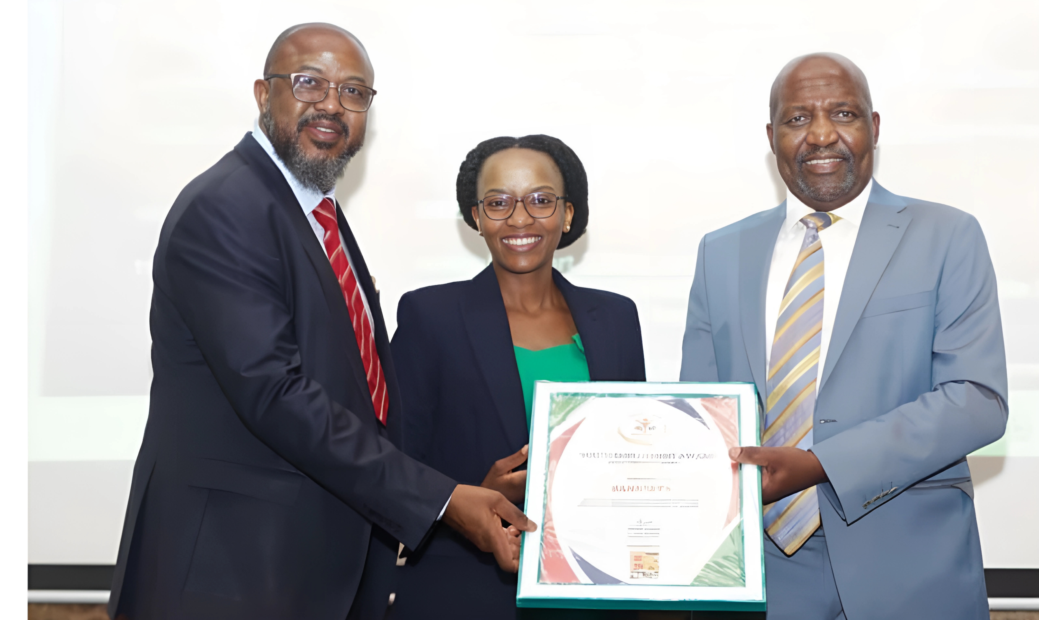 Mr. Thamsanqa Maqubela is delighted to present the Tanzania Business Catalyst Award to Mr. Deogratius Kilawe, Executive Director & CEO of ROUNDTABLE, joined by Dr. Kitila Mkumbo. April 25, 2024, in Dar es Salaam, Tanzania.